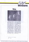 Beim TRIO ist vieles anders. Das fängt schon mit der Veröffentlichung der privaten Telefon-Nummer auf der Vorderseite der LP-Hülle an. Das geht weiter damit, dass die Band, die zusammen wohnt, nicht aus einem der 'Szene-Zentren' Hamburg, Berlin, Hagen etc. kommt, sondern aus Großkneten, einem Flecken irgendwo im Niemandsland zwischen Holland und der Autobahn Bremen-Münster. Die drei Musiker heißen Stefan Remmler (Gesang), Peter Behrens (Standschlagzeug), 'Kralle' Krawinkel (Gitarre), aber diese Namen wird man bei Auftritten nie hören, eher schon Karl Knapp, Kurt Krawinkel oder Erwin, beim nächsten Konzert dann womöglich schon wieder ganz andere. Wichtig ist die Persönlichkeit des TRIOs und die Individualität der drei Mitglieder, unwichtig sind Namen, Frisuren, Lieblingsfarbe etc. Alles Männer, die nicht mehr 17 sind, sprechen sie trotzdem statt über ihre Vergangenheit lieber über die Zukunft, und die scheint interessant zu werden. So wird das TRIO z.B. im November auf große Tournee durch Deutschlands Schallplattengeschäfte gehen, etwas, was bisher wohl noch nie gemacht worden ist und auch nur aufgrund der minimalen technischen Ausrüstung dieser Drei möglich ist.